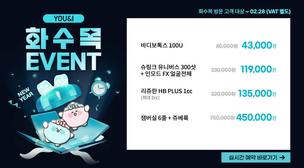 첫방문고객) 리쥬란힐러 2cc 1회 체험가